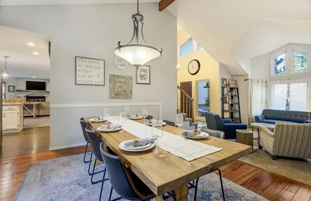 Neben den Annehmlichkeiten für Selbstversorger wie einer voll ausgestatteten Küche bietet die Villa Upper Level - Mountain-View Retreat auch einen Essbereich. Die Küche verfügt außerdem über eine Kaffee-/Teemaschine, einen Kühlschrank und Küchenutensilien.